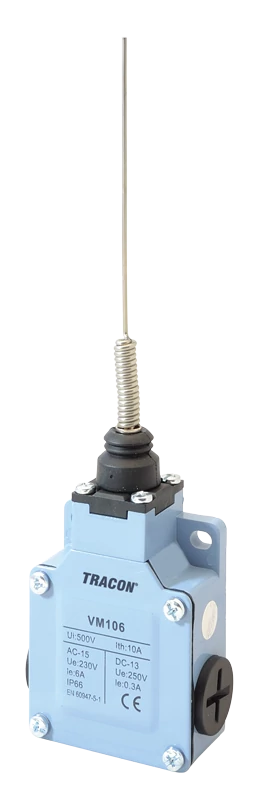 Helyzetkapcsoló, rugószáras (műanyag+acél) 1xNO+1xNC, 6A/230V AC-15, 0,3A/250V DC-13, IP66 VM171