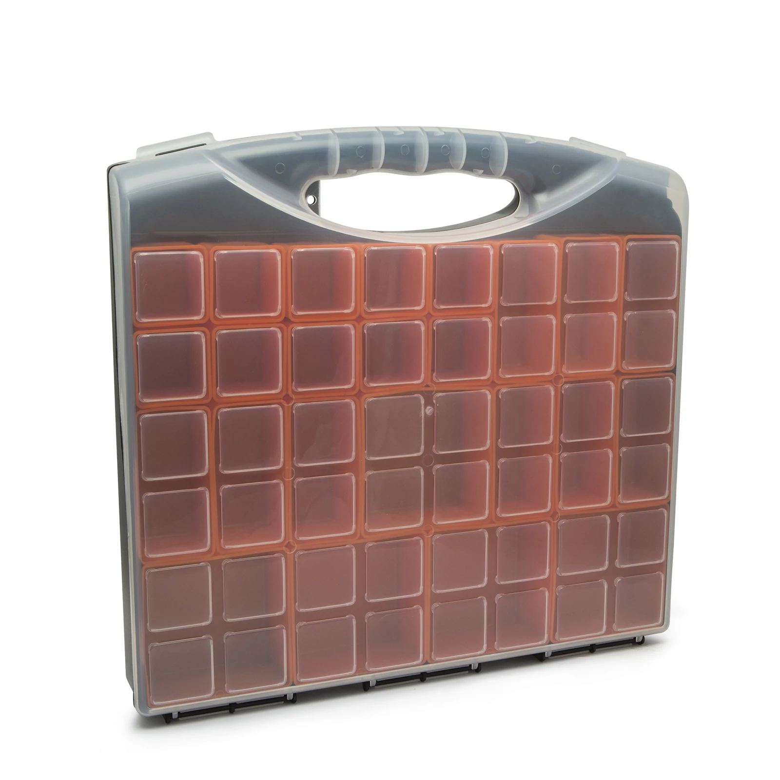 - 10 db 4.5 x 4.5 cm, 9 db 9.5 x 4.5 cm és 5 db 9.5 x 9.5 cm narancs színű kivehető, variálható elrendezésű tárolódoboz